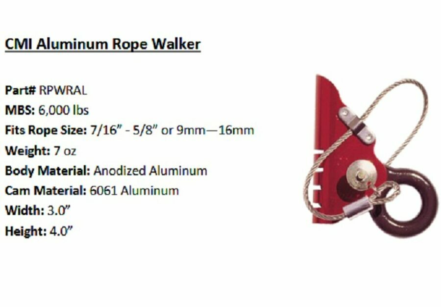 Description: Aluminum Ropewalker: Designed to accommodate left and right handed users, the Ropewalkers grabbing pressure is maintained by the beefiest spring wire in our lineup. Slots in the bottom are designed to pass chips, grit, and mud right on through. For ropes 7/16" - 5/8"