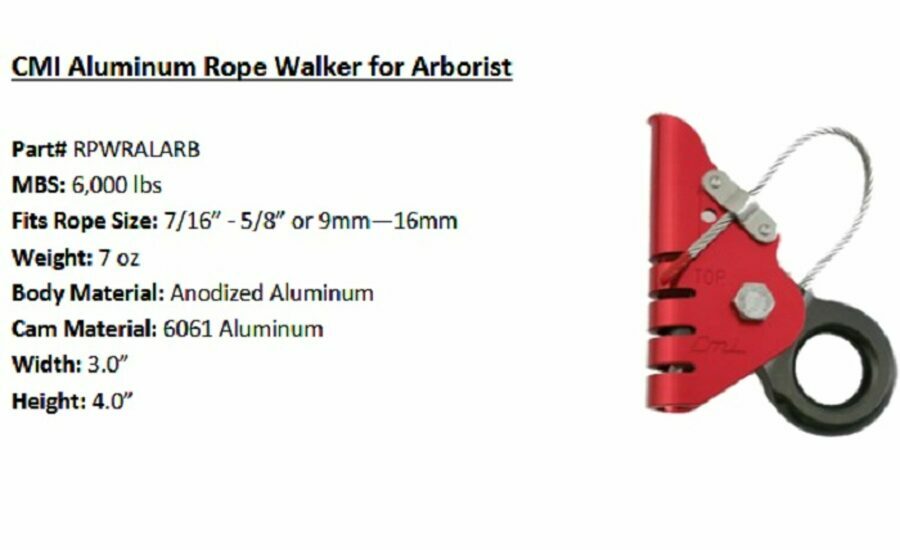 Description: Arborist Aluminum Ropewalker: Provides quick mechanical adjustment to fliplines and comes equipped with an adjustable tension spring and a bolt through the cam for fixed application on the lanyard. This is the strongest flipline adjuster at 7,500lb MBS. Closes securely with a grade 8 stainless steel bolt and locking nylock nut. Ribbed cam. For ropes 7/16" - 5/8"