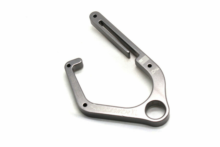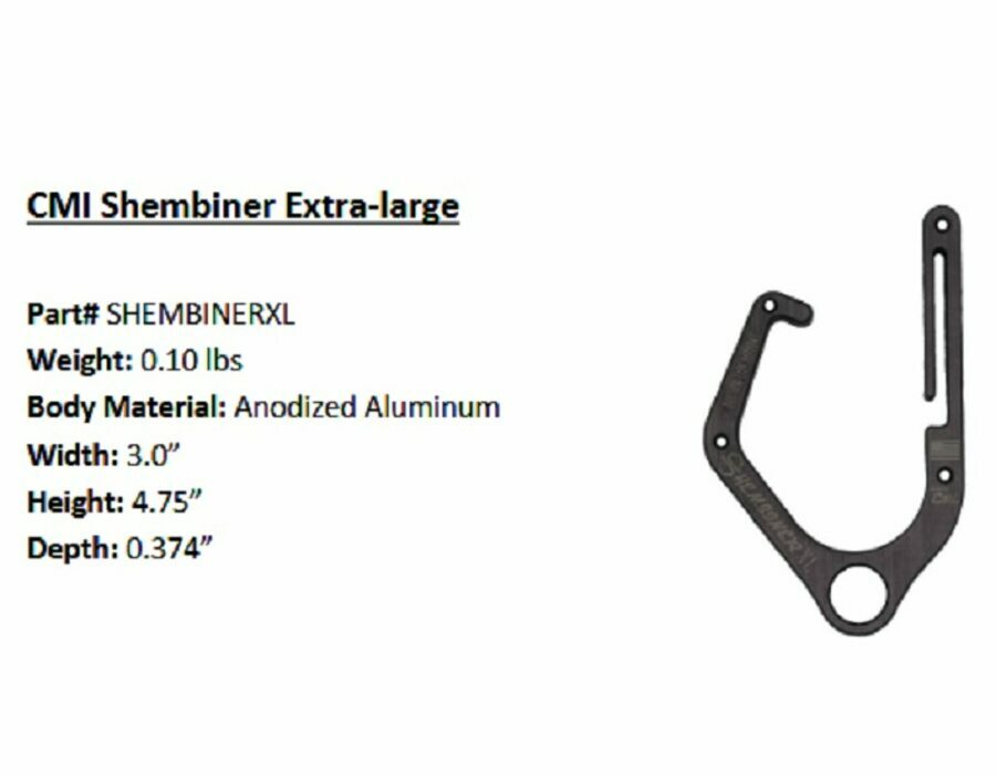 Description: The Shembiner Chainsaw Clip is now manufactured by CMI. The Shem is a high grade, lightweight, aluminum hook engineered to hold your chainsaw close to your harness. Created by arborist, Shem Kendrick to address the ergonomic repetitive motion of the on/off to your harness... now easier. The newer XL Shembiner is the same great regular version but a bit bigger.