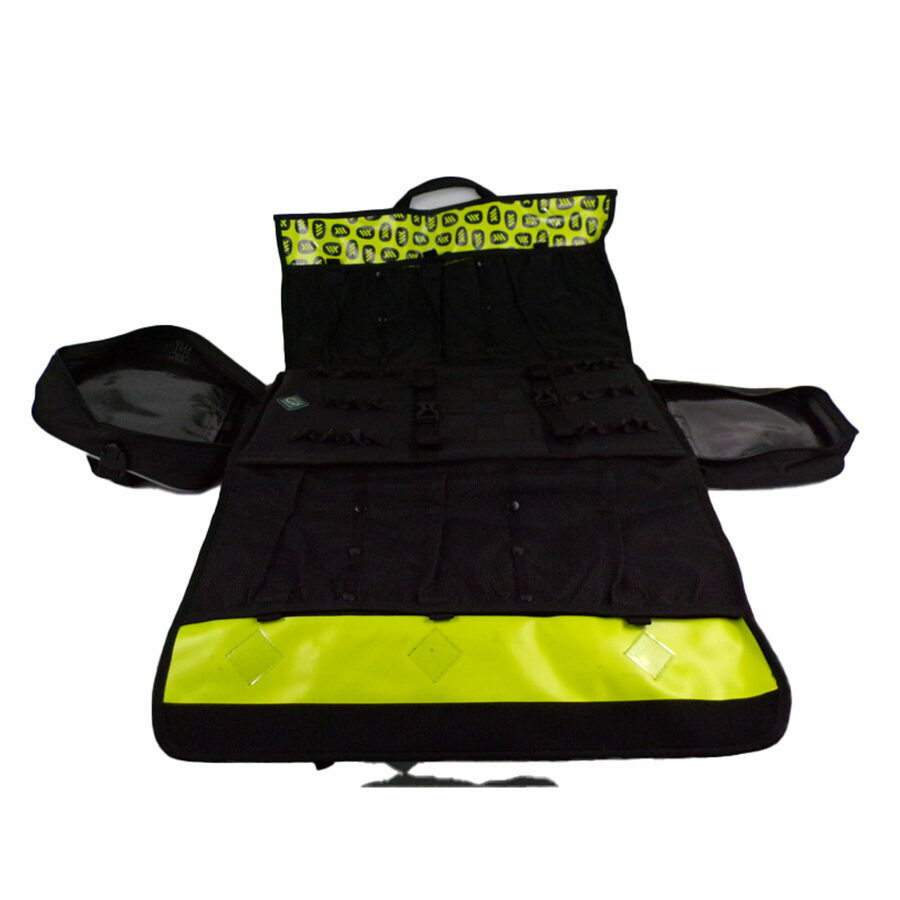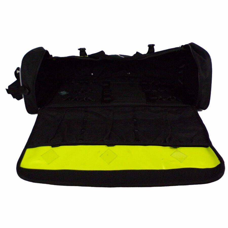 Description: The Cross Pro bag is the perfect solution to store and transport your precious equipment. It has the unique feature of totally opening up, to give you an overall view and full access to all your gear. The ergonomic shoulder straps and padded back make the Cross Pro also very comfortable to wear, and it comes in four exciting colour combinations. INTERIOR: 6 modular mesh compartments at the sides, the use of pop fasteners allows pockets to be made large or small, identification of pockets by pictogram style labels, storage can be customized as you wish, 20 karabiner attachment points, 2 adjustable buckle straps for securing ropes or a harness, 1 organiser panel with elasticated webbing, 2 semi-transparent pockets for documents, 1 mesh compartment reachable by external zipper for your phone or other more fragile items. EXTERIOR: 6 karabiner attachment points, 4 high-resistance retainers (including two on the shoulder straps), 1 transparent pocket for documents and/or identification, 1 helmet fastening kit, which also works for a helmet with visor & ear protection, padded back and adjustable padded shoulder straps for maximum comfort when transporting, option of adding the Cross Belt to the bag in order to distribute the weight on the body.