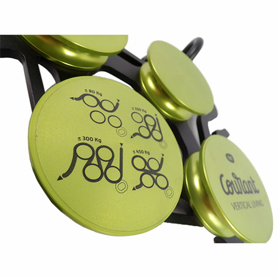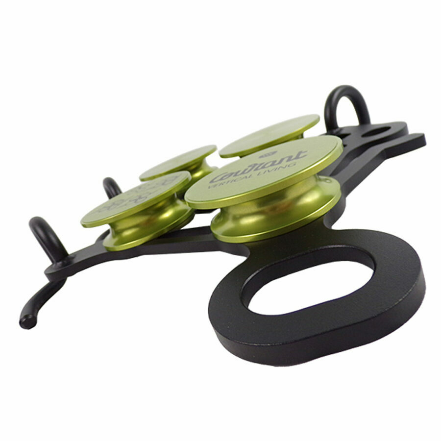 Description: The Hulk is an innovative floating lowering device designed to improve your lowering capabilities. The steel frame makes it robust and hard wearing, where the aluminium sheaves minimize rope wear and therefore increase the life of your rigging ropes. Using different setup options you can easily adjust the friction on the rope according to your needs, It can accommodate loads from 10kg to a maximum working load limit of 500kg.