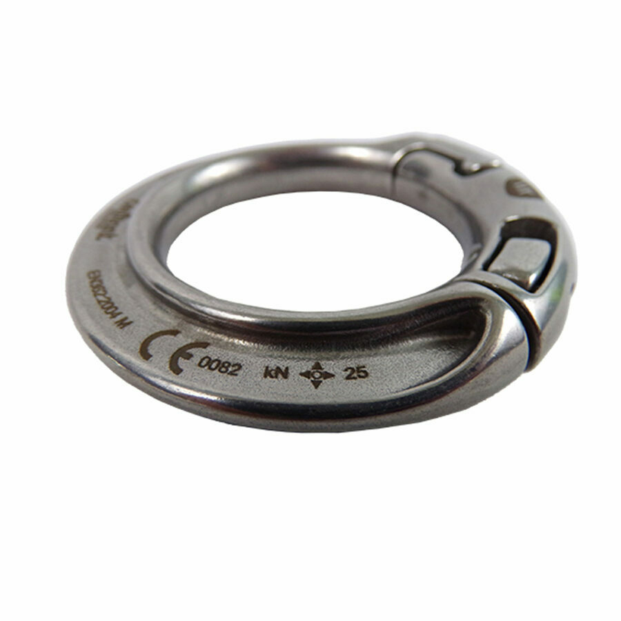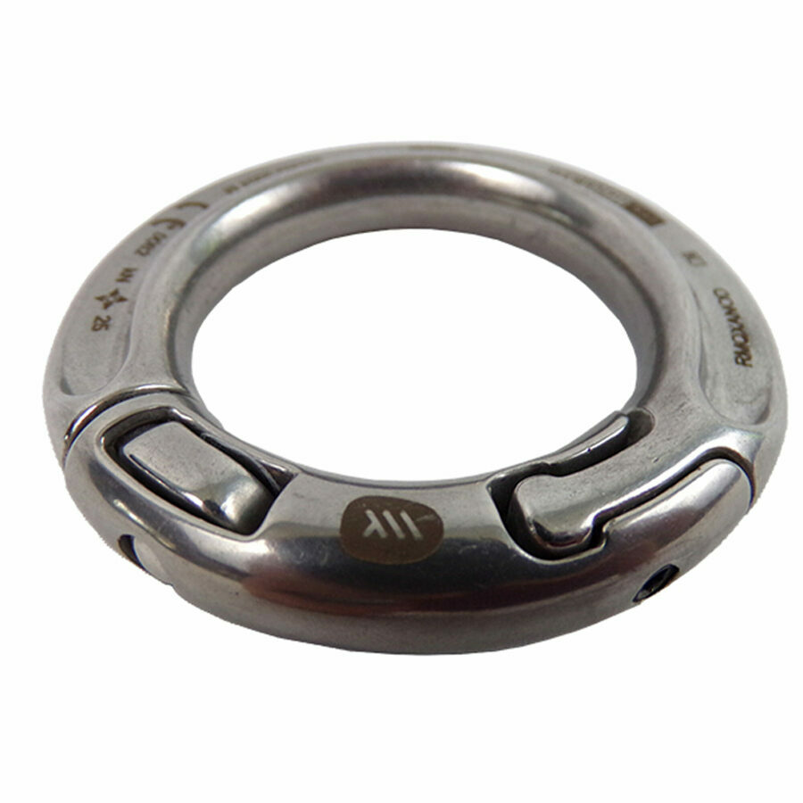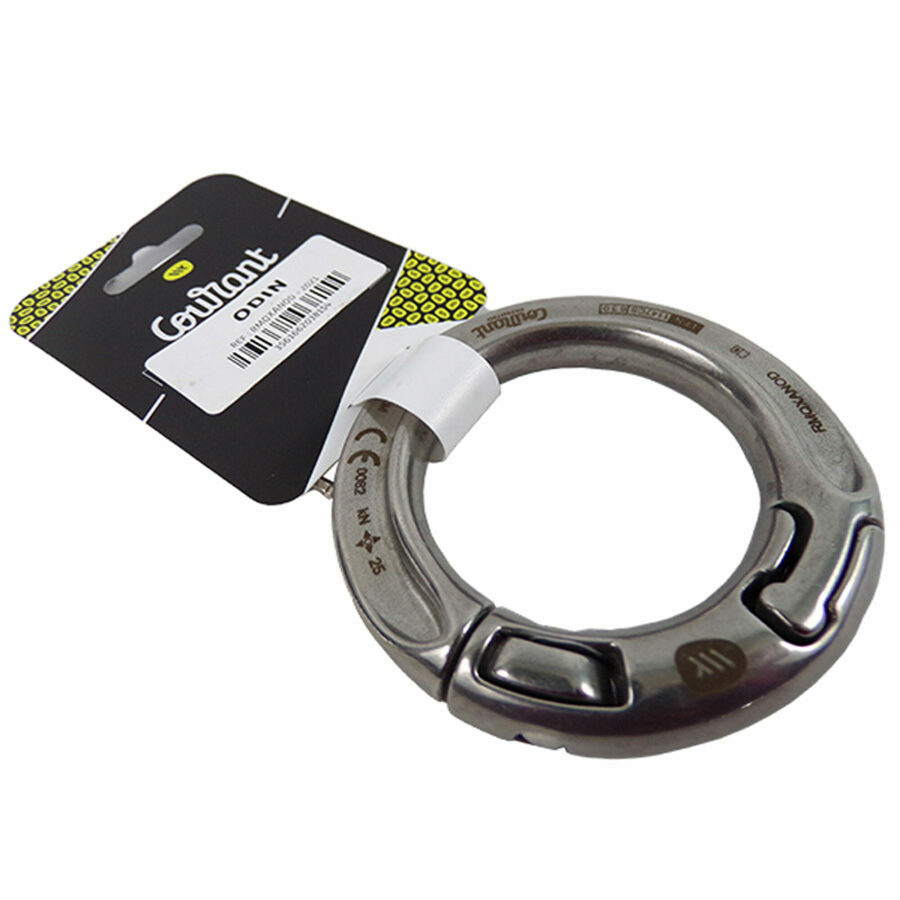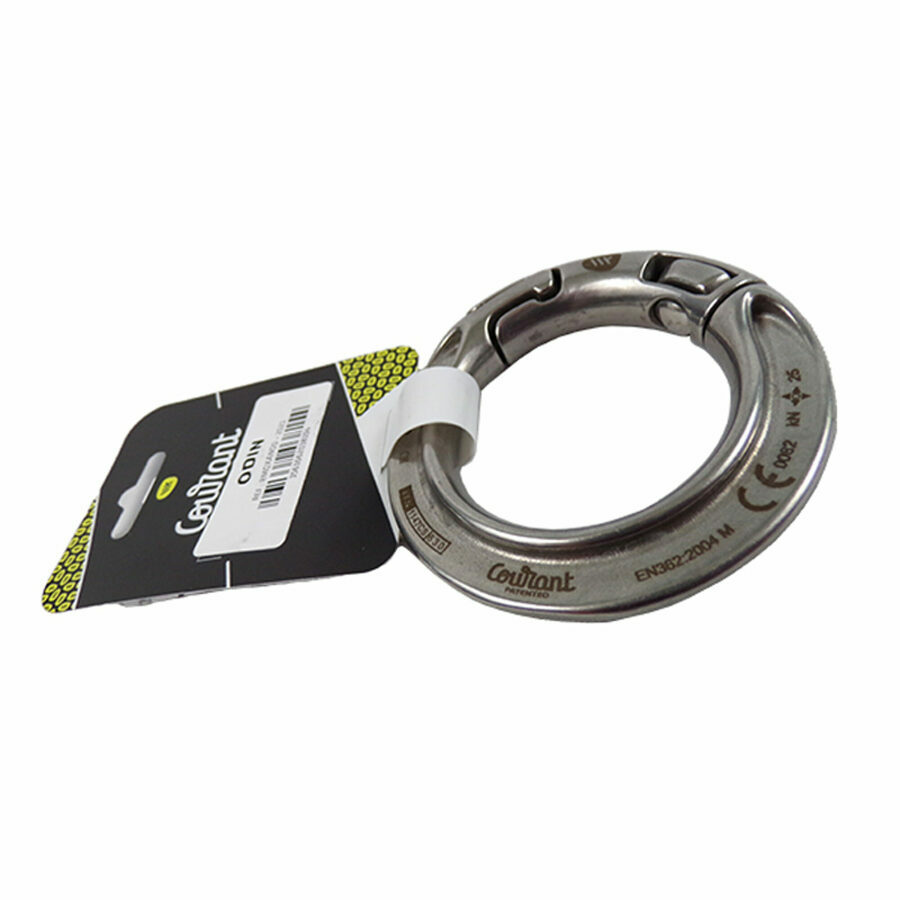 Description: The Odin is made from high resistant stainless steel. It is a versatile connector, facilitating numerous setups and configurations. It opens like a typical carabiner but in a sideways direction. Together with a specially designed keylock gate it assures minimal force is applied to the locking screw. The screw has a spring ball system with a thread lock to securely fix the gate before use.