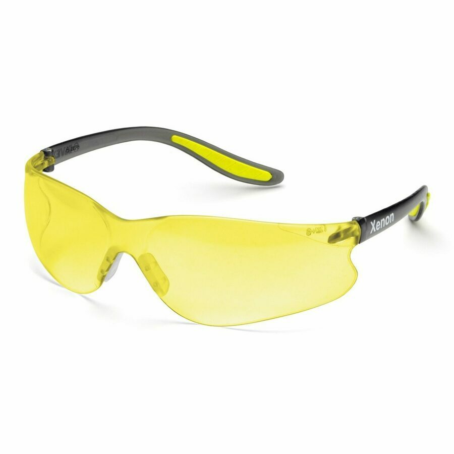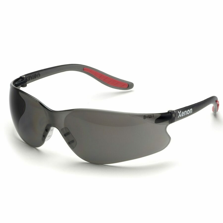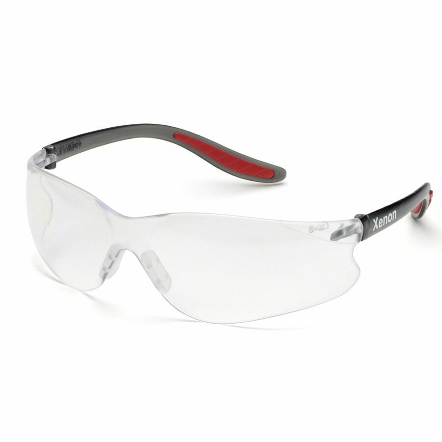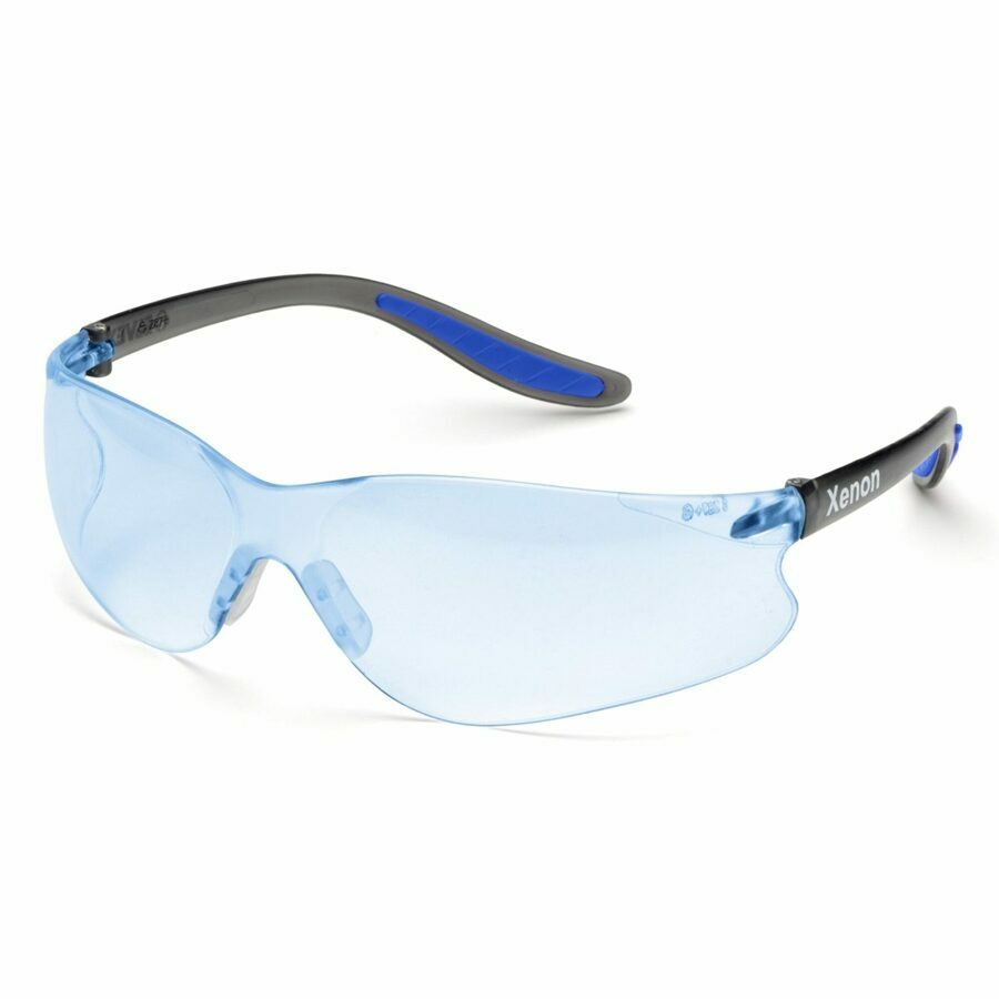 Description: Lightweight (only 0.8 oz, or 22 grams) safety glasses. Xenon fits smaller faces and female faces very well. This design also is quite stylish and comfortable, and in addition to its good looks Xenon offers a soft rubber nose bridge and colorful rubber inserts on the temples for comfort and a secure grip.
