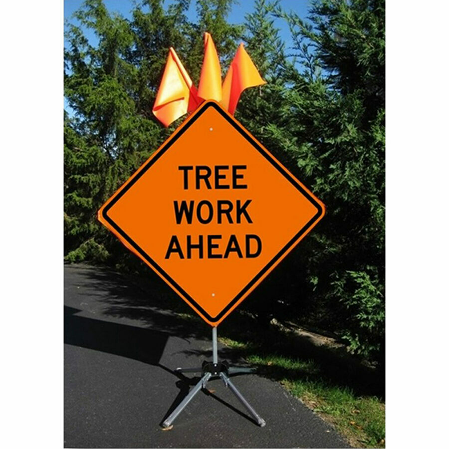 Description: 36" Tree Work Ahead Sign Kit with Flags. Roadside lane safety - you shall have safety demarkation lines. This sign is study, well build and large.