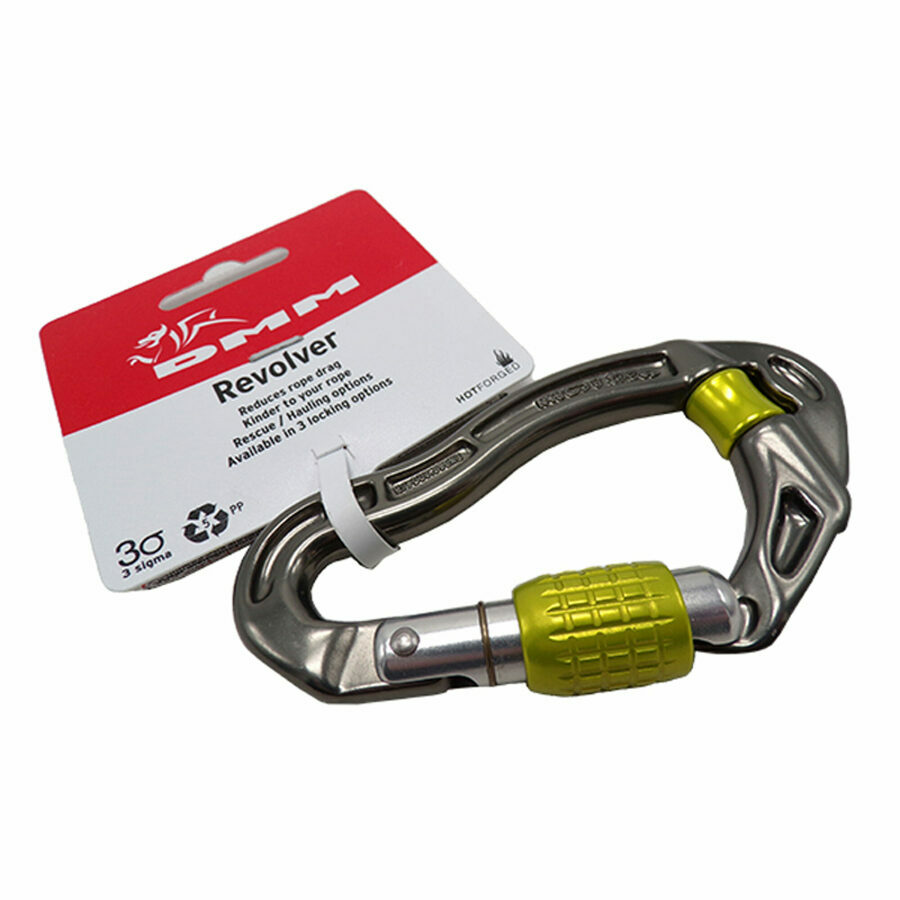 Description: DMM Revolver is a ground breaking concept that has gained legendary status for industrial and recreational use. Take the advantages of lightweight aluminium connectors and morph them with a roller wheel from a pulley and you've got an incredibly versatile piece of equipment: counterweight rescues, clipping tight lines, hauling chainsaws, deviating running ropes, etc. the list goes on.