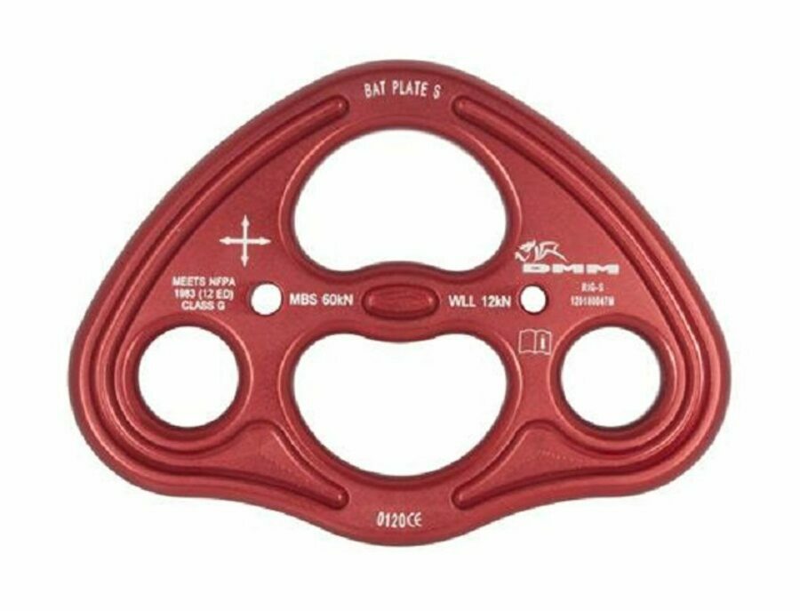 Description: DMM Bat Plates raise the bar in design, performance and strength. Precision machining and heat treatment make them strong, light and incredibly versatile. The Bat shape minimises height loss in complex rigging scenarios and generous radii allow direct attachment of textiles as well as connectors. The oversized central hole allows for effortless centralising of connections and gives a perfect technician clipping point.