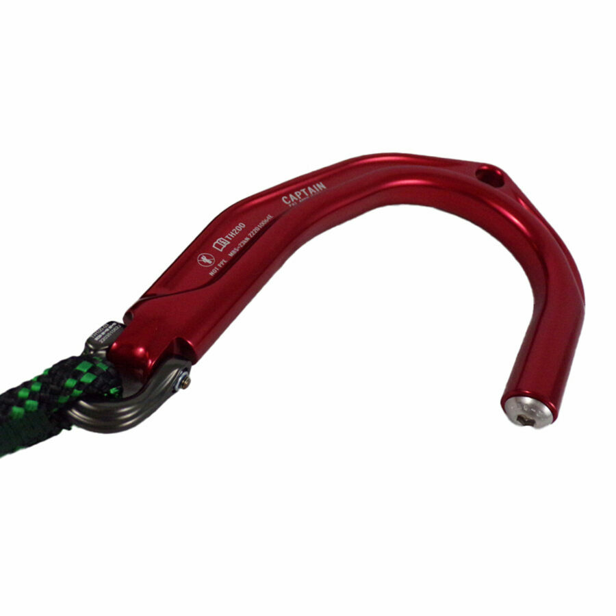Description: An innovative tool catering for modern work at height techniques. Carefully designed to aid stability and positioning during technical jobs. The Captain is a self-locating, high strength hook that has been designed and tested with the trademark attention to detail that is synonymous with DMM. The pivoting D shackle helps destabilise the hook if presented in the wrong orientation and interacts beautifully with the carefully sculpted hook form to ensure reliable location on the anchor, specifically for connecting to remote anchors and facilitate controlled sideways movement – traversing. Once in place, the quality engineering ensures a rated strength of 23kN (dependent on the anchor). When the job is done, the Captain racks superbly on a harness, minimizing the chances of snagging. Perfect for working between or within complex structures.