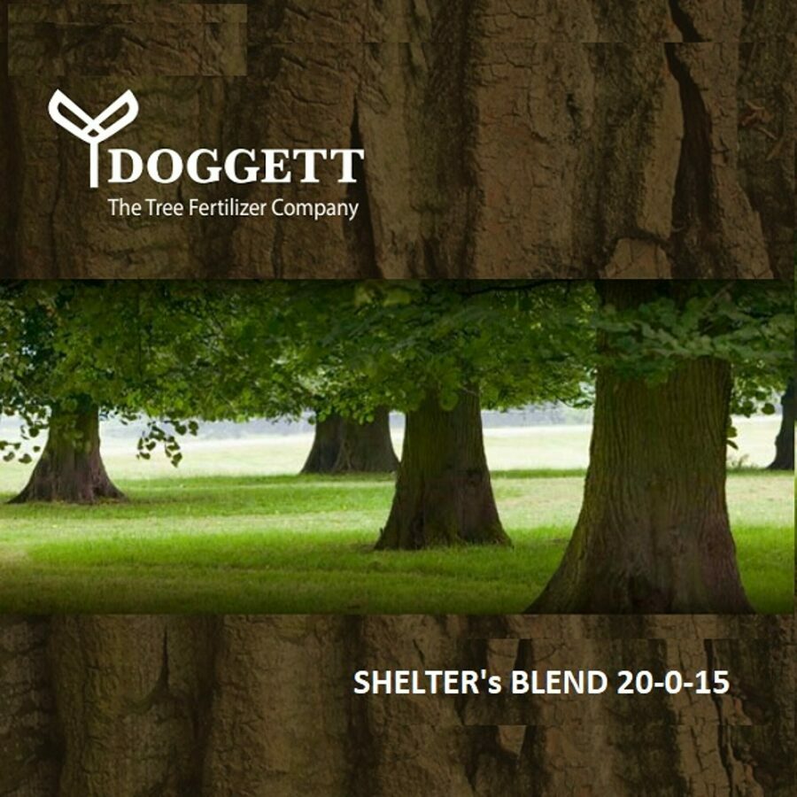 Description: Shelter Tree worked with Doggett Corporation to create an environmental low impact fertilizer while formulating a solution for customers with restrictive geographic areas around water sources. This formulation is uniquely created for New England soils, using a specific slow release nitrogen source (11% WIN (Water Insoluble Nitrogen) and 3% slowly available N). This allows 6-12 months of slow release fertilization. Shelter Tree 20-0-15 Blend is best for maintaining tree health while being safer on the environment. The formula contains humates for increased cation exchange capacity and it conditions the soil profile.