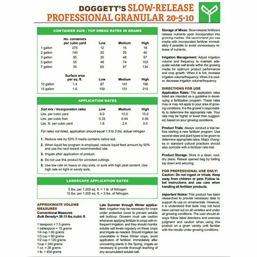 Description: Doggett 20-5-10 Professional Slow Release Granular