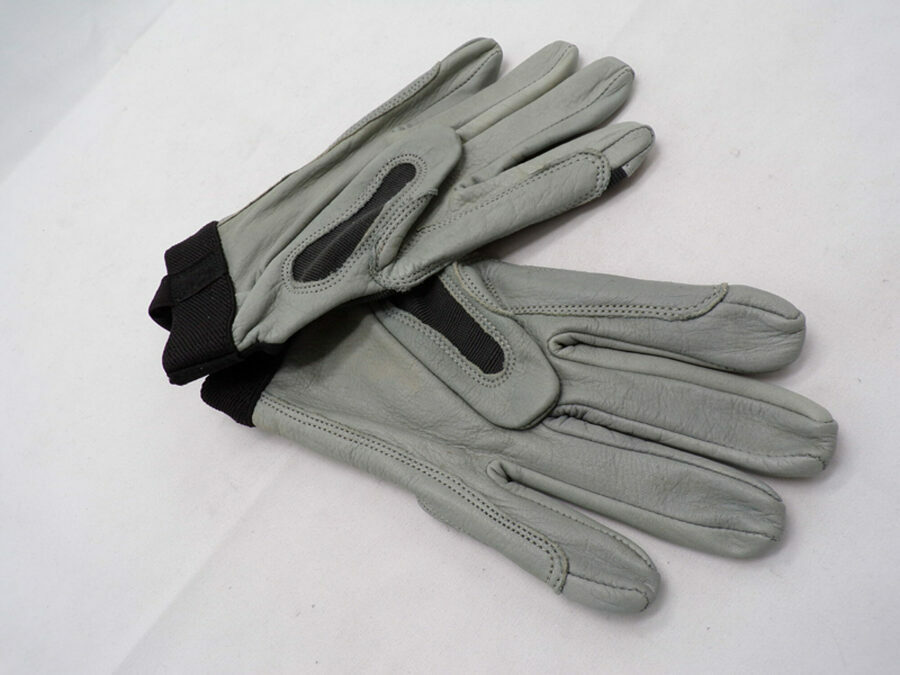 Description: Skinny Glove, titan, XS full finger glove, calfskin leather palms, stretch material on back Thin calfskin work glove that is reinforced at neuralgic points. The elasticated material on the back of the hand and cuff enables an optimum fit. The cuff can be adjusted using the VCR strap.