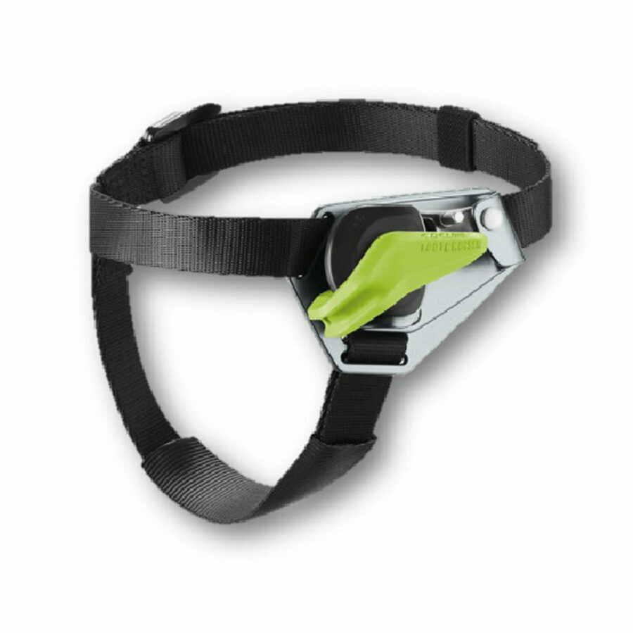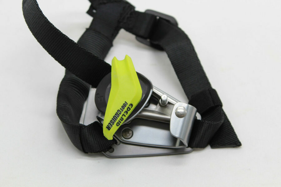 The FOOT CRUISER incorporates a rope clamp that prevents accidental disengagement from the climbing rope