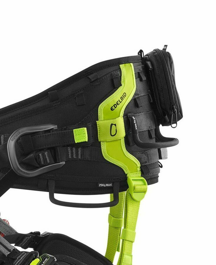 Description: The most versatile tree-care harness of all times. With a variety of rope bridge configurations and optional SRT BRIDGE for safe and comfortable working on single ropes. The innovative 3D Vent Technology, in combination with the wide, semi-rigid padding, ensures unsurpassed hanging comfort and at the same time good breathability. 4 large gear loops, numerous attachment possibilities for gear carabiners as well as a device for suspending a chainsaw round off the complete package of this unique climbing harness.