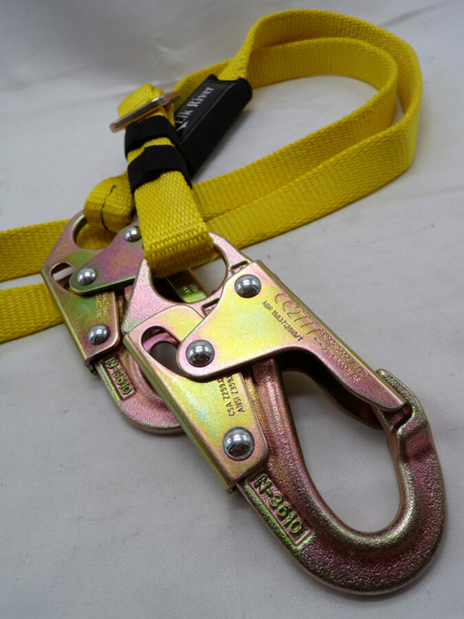 Description: Simple and straight forward safety. Adjustable work positioning lanyard for a connection point to a pole or a tree. Adjustable web lanyard with CenturionZ snaphooks.