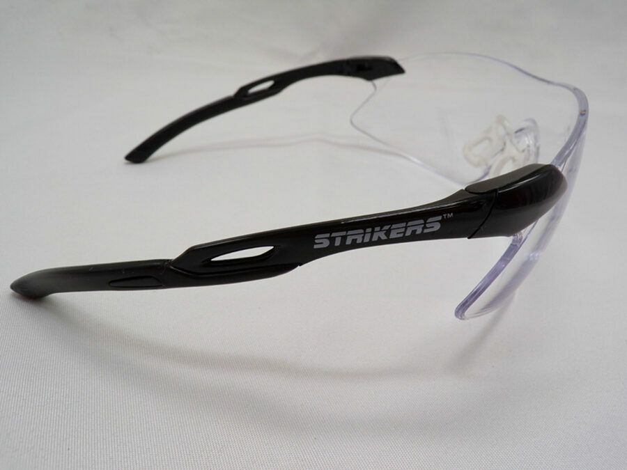 Description: ERB Strikers Safety Glasses - Black Frame - Clear Anti-Fog Lens
