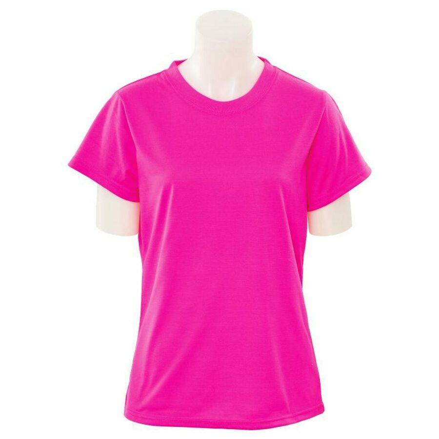 Description: 7000 Women's Fitted Short Sleeve T-Shirt Hi Viz pink 100% polyester soft jersey. Designed to flatter the female figure. Does not meet ANSI requirements.