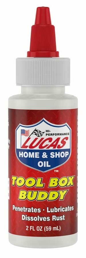 Description: Long lasting and super slick - allows tools to run easier and much longer. Two ounce Tool Box Buddy is exactly as the name implies - this is a superior lubricant packaged for the tool box. Lucas Air Tool Lubricant is a unique formula that was developed for the working professional who demands top performance. It combats rust and varnish and coats the working parts with a cushion of waterproof lubricants that resist blowout. That means it lubes the tool and not the floor. Sold in quarts, pints and also two ounce bottles as Tool Box Buddy.