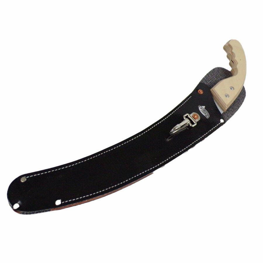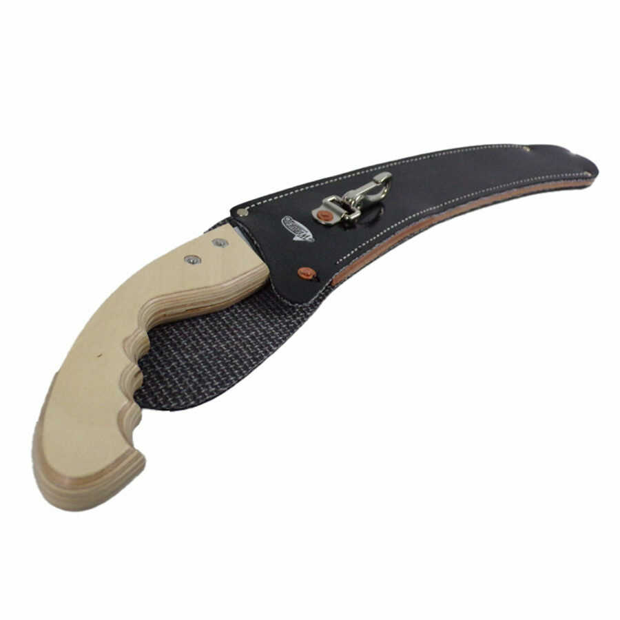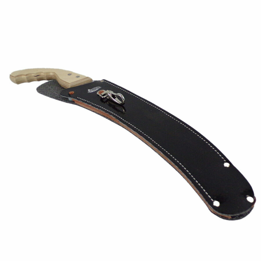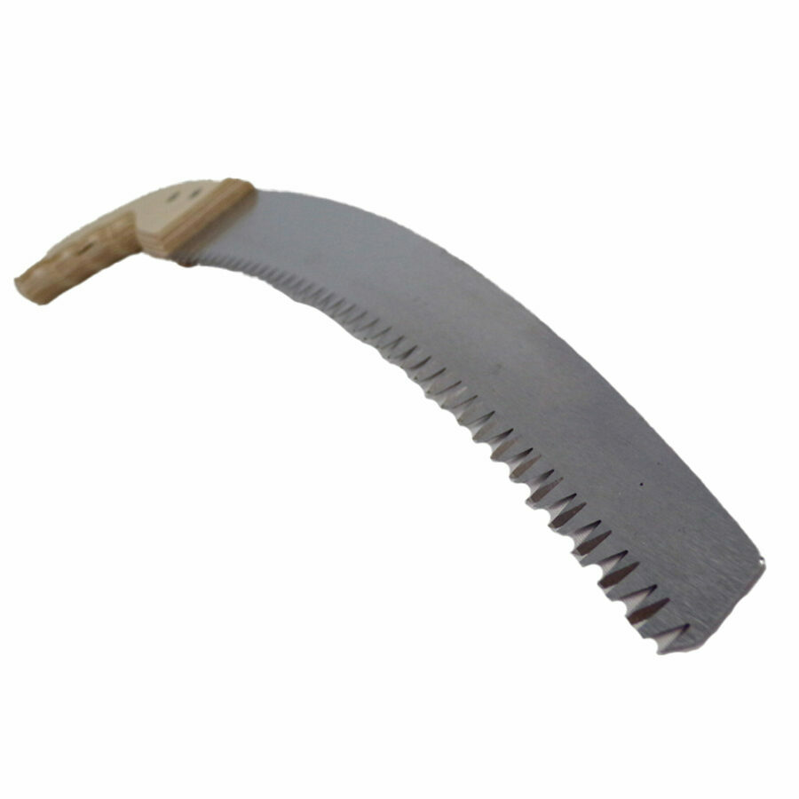 Description: The Fanno 13in Curved Pruning Saw Model FI-1311 has a curved 13in blade featuring 6 tri-edge teeth per inch. Tri-edge tooth design cuts cleaner and faster, saving time and labor. Contoured laminated hardwood handle. This tri-edge blade will make quick work of branches and limbs. The contoured, laminated, hardwood handle has a comfortable pistol grip. Tri-edge blades are easily replaced with a screwdriver and also works great on a pole saw. Comes with Scabbard.