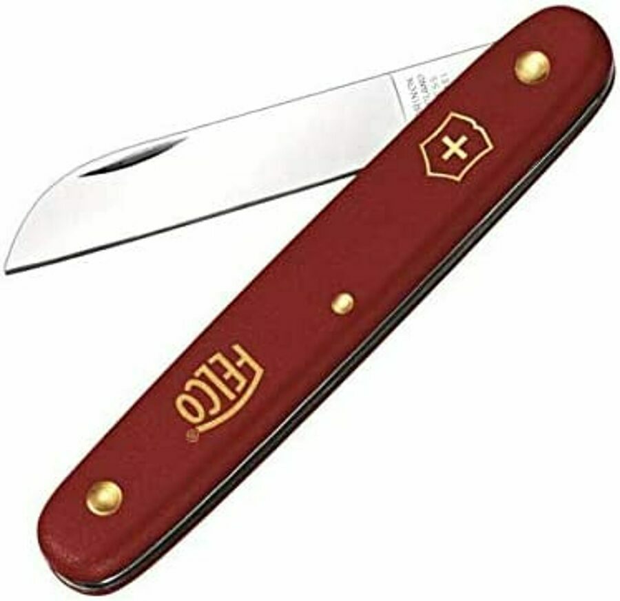 Description: Felco pruning knives feature blades that are crafted from high quality hardened steel. This enhanced durability increases the overall longevity of the blade. This knife is designed for crown grafting or propagating cuttings. It can also be used to saw stems and twigs off of branches. Our right-handed grafting and pruning knife features a single bevel blade. The single bevel blade allows the user to make straight and controlled cuts. This knife features a simple and sturdy design consisting of a handle that is made of red nylon scales with a standard alloy lining. This is a folding slip joint knife with a very strong back spring.