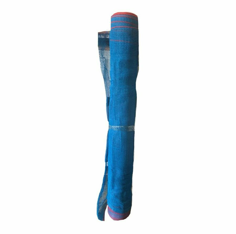 1/4" mesh hole opening. 4' height X 150' length. Blue in color.