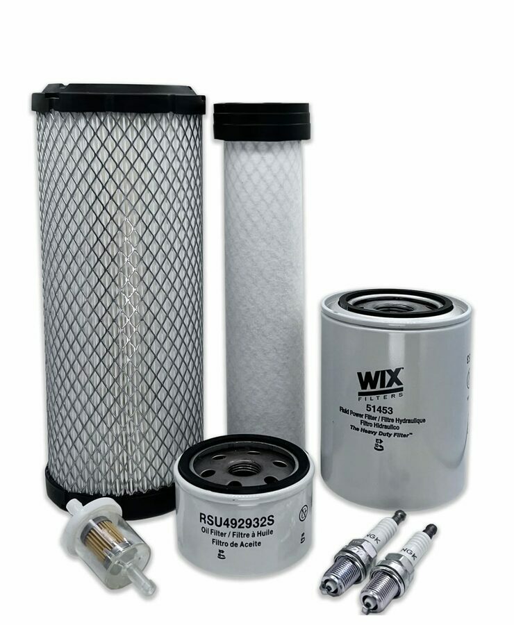 This maintenance filter kit includes: Engine Oil Filter, Hydraulic Oil Filter, Primary Air Filter, Secondary Air Filter, Fuel Filter, Spark Plug