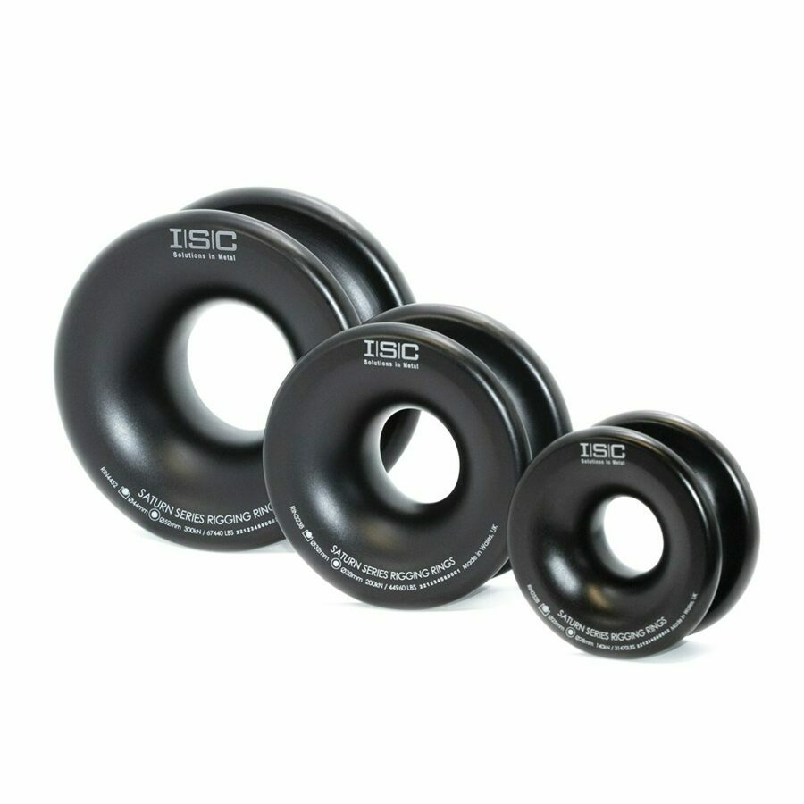Description: SATURN Series Rigging Rings are CNC Machined from solid Aluminium, with smooth radiused rope surfaces. The rings have a Hard-Anodised coating for durability and a polished, low-friction finish. ISC SATURN Rings are available in three sizes and can be used in a variety of rigging configurations. SATURN Rings can also be spliced in to anchor slings by the supplier/user and used to create single/multiple redirects, to tailor the friction in a rigging system. Rigging rings are versatile, low maintenance and easy to inspect.