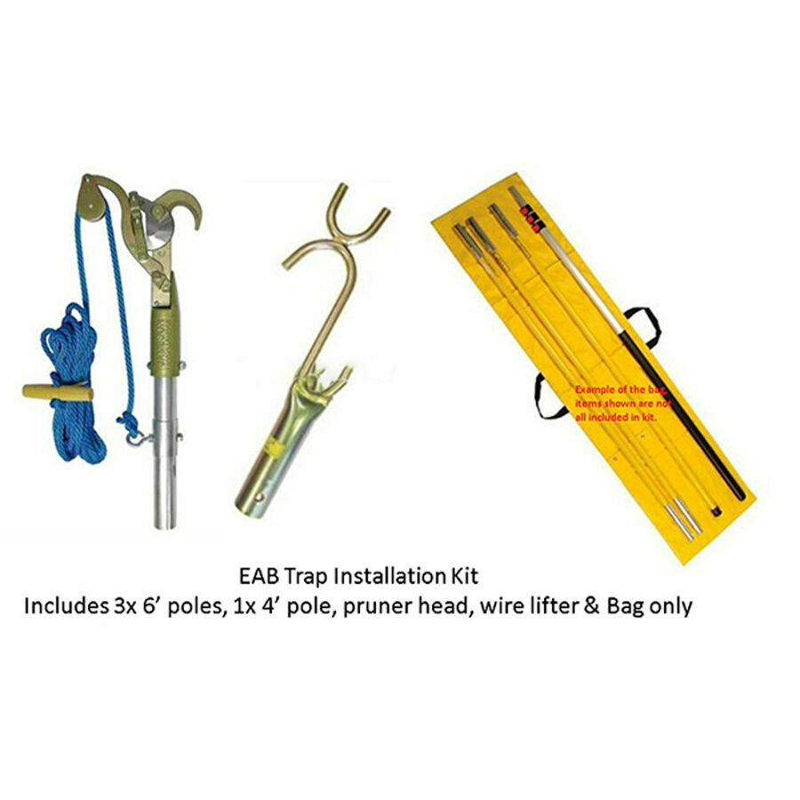 Description: Monitoring for EAB? If you are not efficient at using a throwliine than this kit is great for you. Used to hang EAB (Emerald Ash Borer) traps, this kit was designed by Bear LeVangie with support from Lallemand. The kit was created to optimize hanging traps to heights successful for monitoring the invasive and deadly EAB population in your area. Includes: 3x6' FG Jameson poles, 1x4' FG Jameson pole, a1-JA14S-PKG, 1-Wire Raiser, 1-Pole Bag