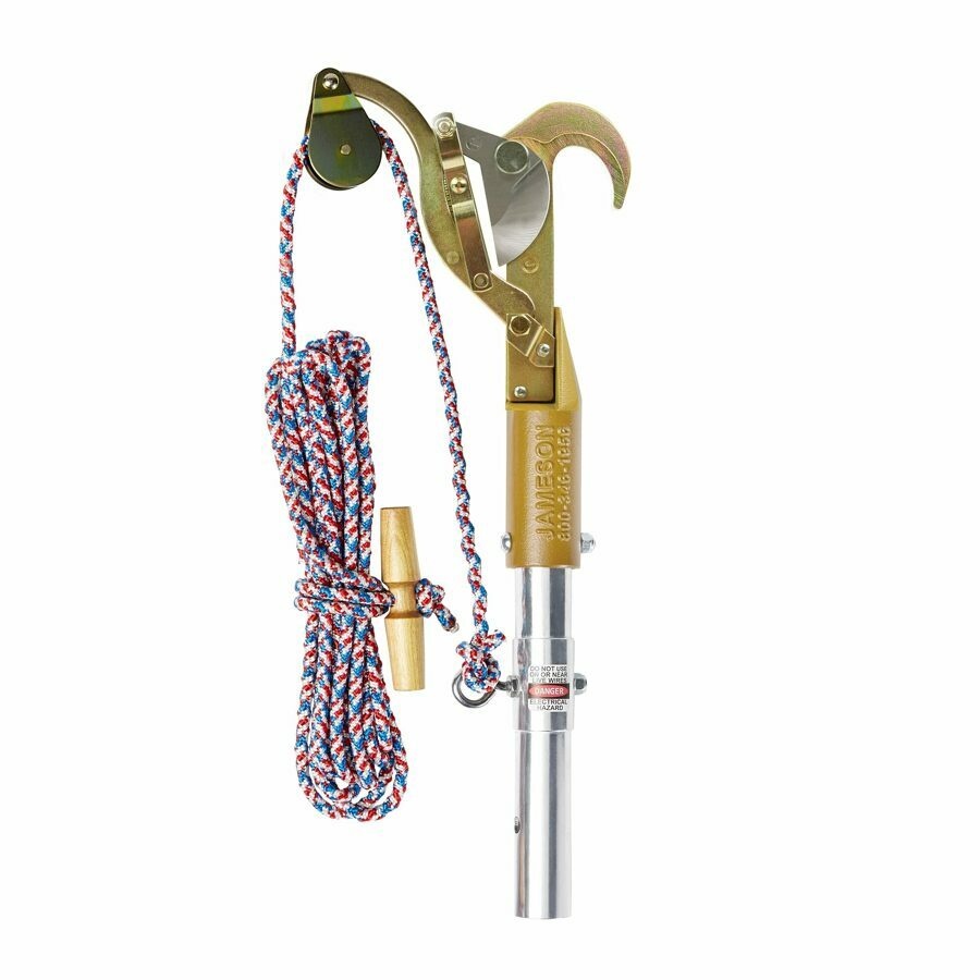 Description: JA-14 Fixed Pulley Pruner Kit includes the pruner, adapter (PHA-14), and rope (PR-20-BR-RWB). The original JA-14 has a 1.25 in. cutting capacity and features a removable upper spring pin and blade bolt for easy blade replacement and sharpening. A Complete Pruner Kit with Premium Bumpy Rope, Red White Blue