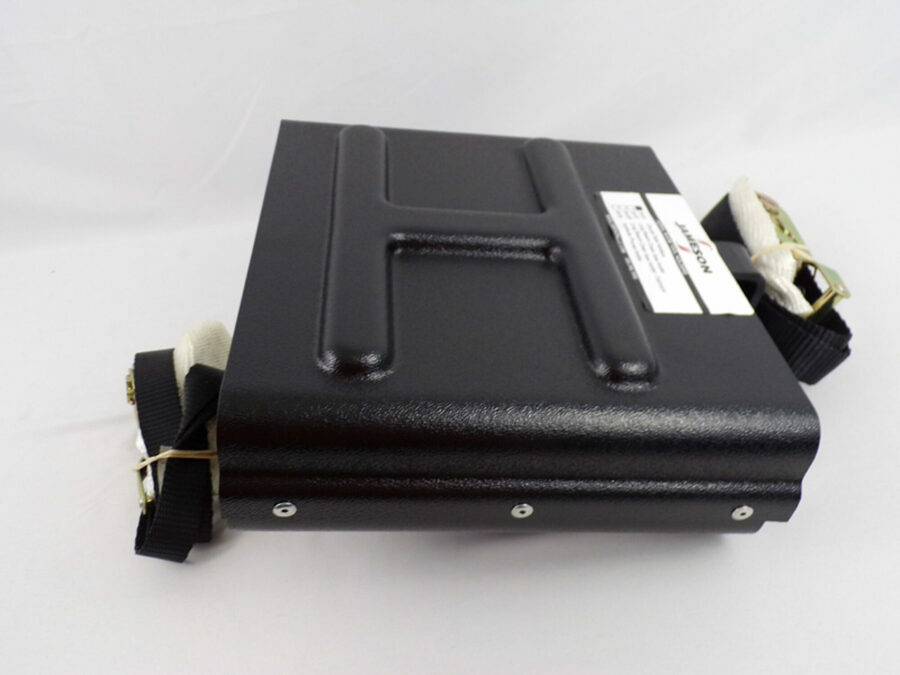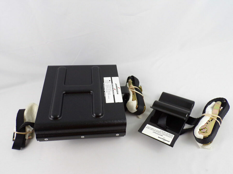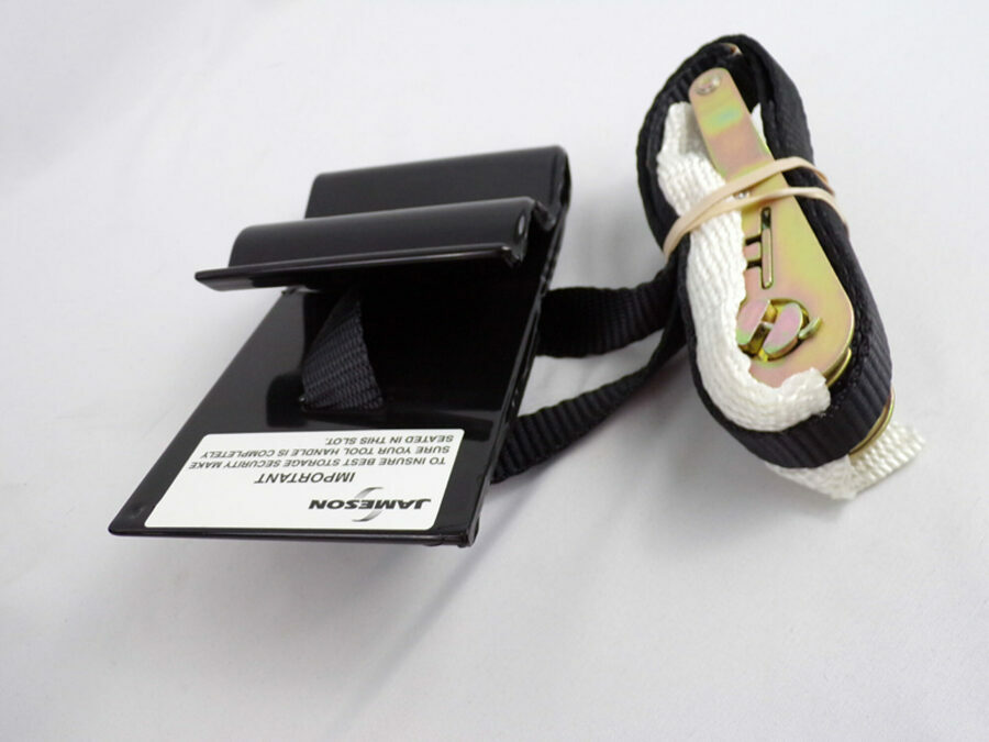 Description: Circular Saw Holder with ratchet straps and handle holder mounts on the boom for safe, convenient access. Made from high impact plastic, Jameson's boom mount tool holders can be strapped to round or square booms.
