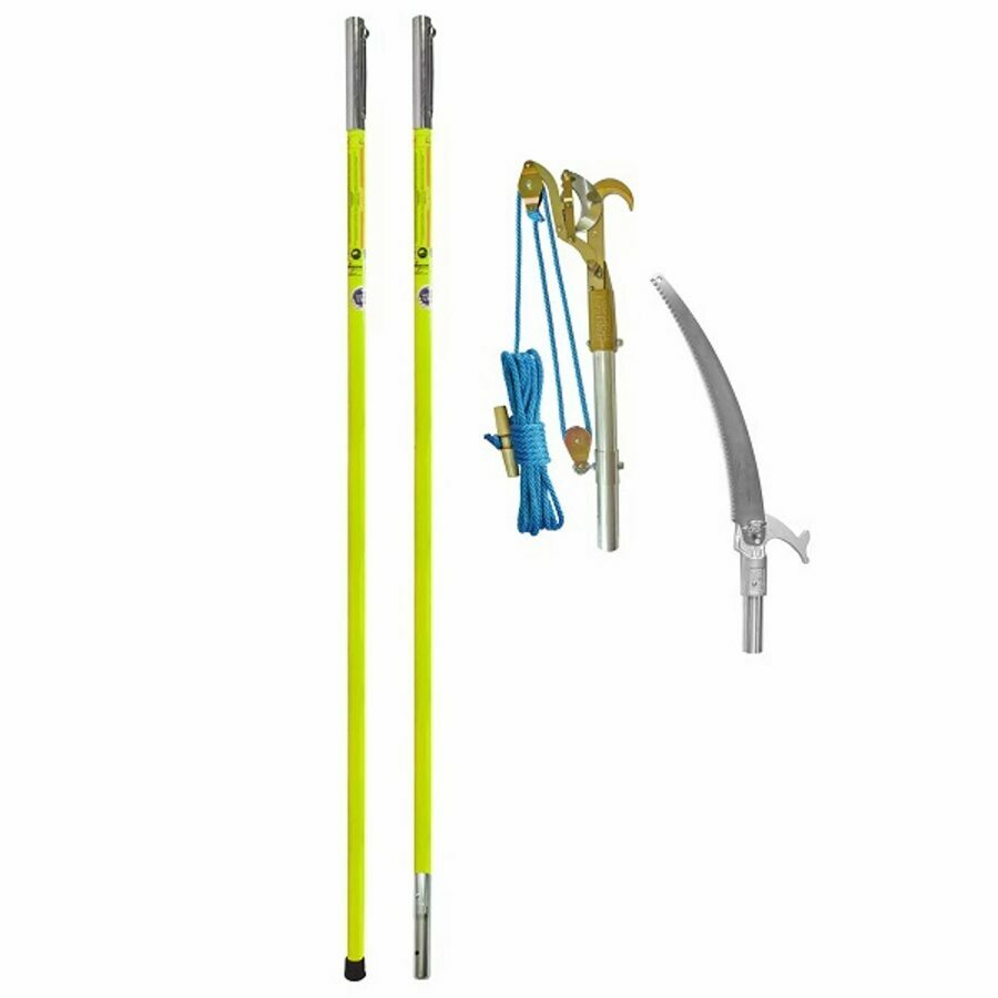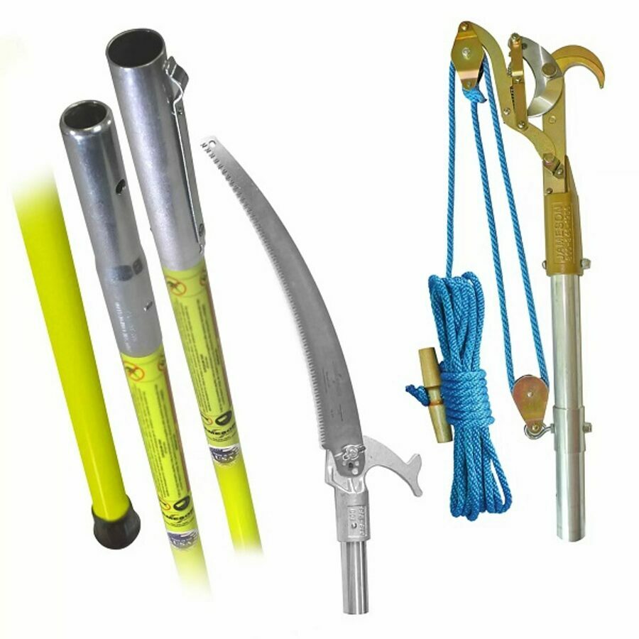 Description: JE Arborist Kit: JA-34 Double Pulley Pruner, Rope, Pole Saw Head, 16 in. Tri-cut Saw Blade, 6' JE Extension Pole, 6' JE Base Pole