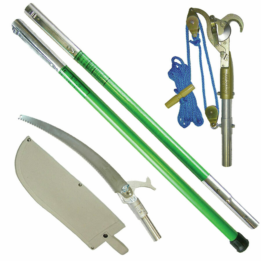 Details: Kit includes: (1) 6-foot base pole, (1) 6-foot extension pole, (1) pole saw head, (1) 1.25-inch pulley, (1) 16-inch saw blade and (1) canvas scabbard.