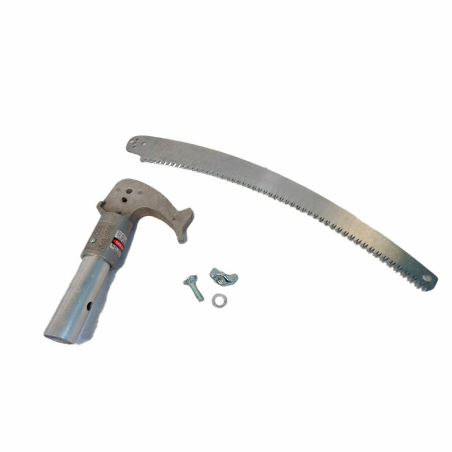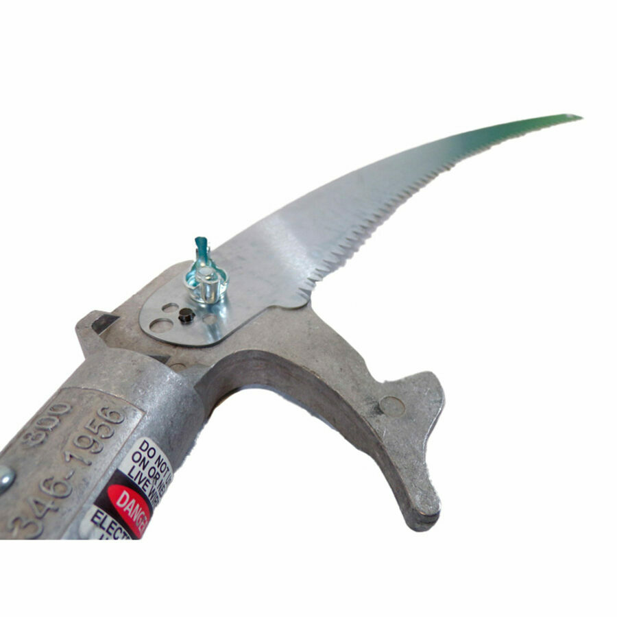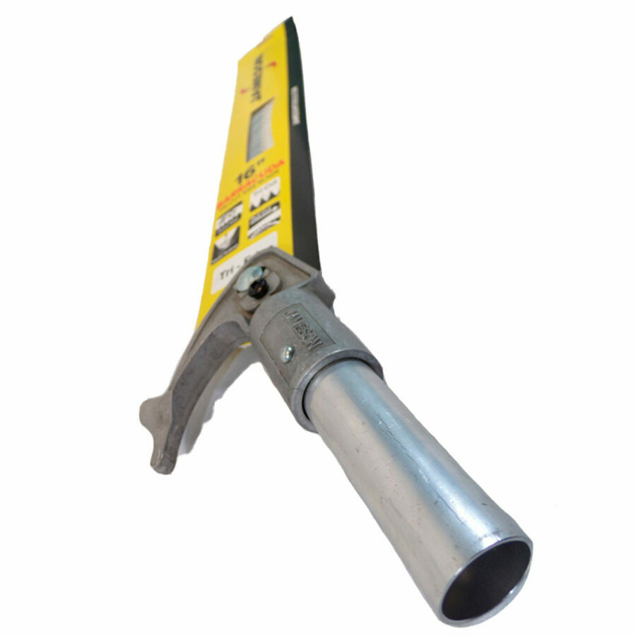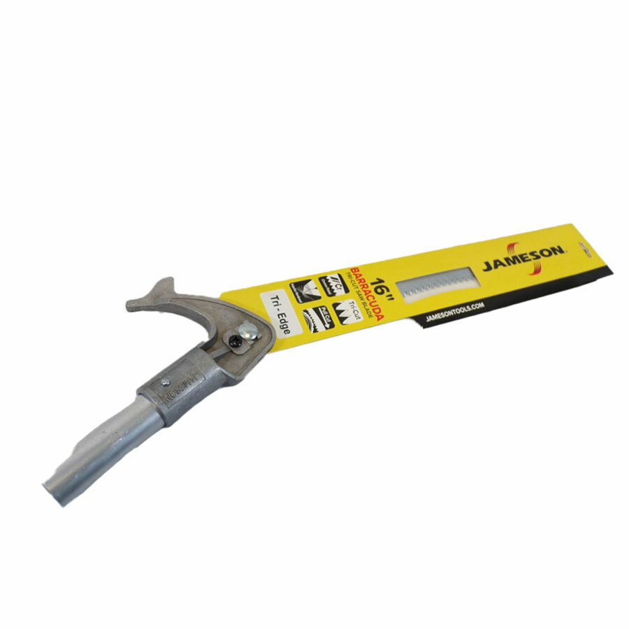 Description: Pole Saw Kit includes Pole Saw Head (PS-3FP) and 16 in. Tri-Cut Saw Blade (SB-16TE). Jameson's pole saw heads are manufactured of corrosion resistant, lightweight aluminum. Their low profile design maneuvers easily in dense foliage; convenient hook pulls loose limbs and branches free. Not for use on or near live wires.