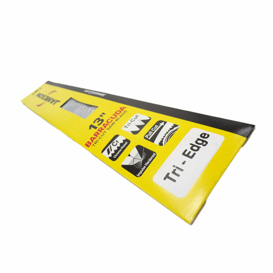 Description: The Barracuda™ Tri-Cut Saw Blade provides a quicker, cleaner cut with less wear on the blade than traditional blades. This saw blade is a hard-chrome plated, tri-cut blade with a long-lasting edge, making it a must have for arborists and homeowners. This 13 in. saw blade is both durable and sharp enough to cut through the toughest limbs with no trouble at all.