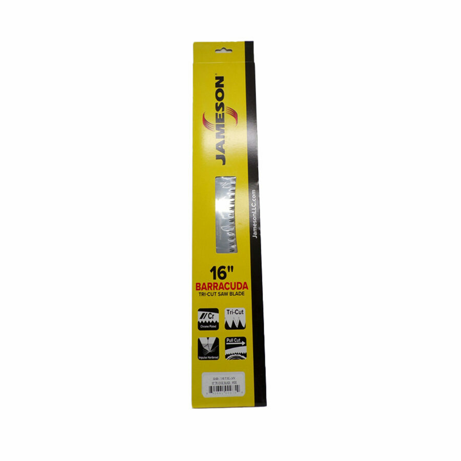 Description: The Barracuda Tri-Cut saw blade line was designed to meet the demands of professional arborists. The hard chrome plating and impulse hardened teeth produce a cleaner cut with less blade wear compared to traditional saw blades. Wider blade is more rigid than typical 16-in. saw blades. Center-mount blade is compatible with Jameson pole saws and fits Jameson PS-3FP Pole Saw Head, SB-UC Universal Saw Blade Casting, and Smith #20 Pole Saw. This does not work with our hand saws. Includes (1) 16-in. saw blade.