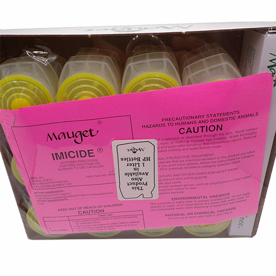 Description: Imicide is used by the USDA , state and city governments in prevention and eradication programs for Asian and Citrus Longhorned Beetles, with over 500, 000 trees successfully protected. Since 2000, the USDA lists Imicide as the only trunk injection product in their APHIS Emergency and Domestic Program for control of the Asian Longhorned Beetle. Research shows that Imicide is one of the most effective preventative and multi-season control treatments for the Emerald Ash Borer as well as other labeled insects.Imicide is also available as Imicide Hp in high volume one liter bottles for most all liquid loadable injector equipment. It has been the only tree injection product used by the U.S.D.A. on over 500,000 trees in their Asian Longhorned Beetle emergency program.