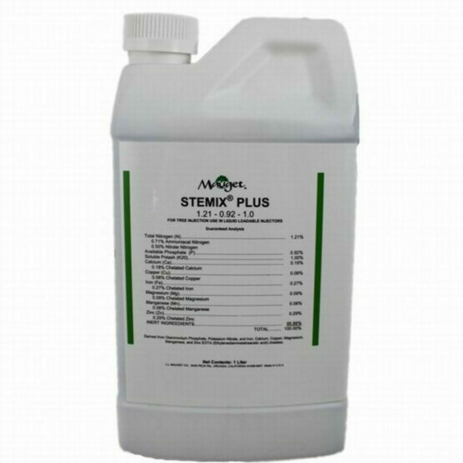 Description: Stemix® Plus HP from Mauget is a water based fertilizer for use with liquid loadable injectors. An optimum formulation of chelated minerals with a very low salt index and elevated magnesium and calcium, designed to stimulate both foliar and root growth. Stemix Plus is for use in trees where deficiencies cannot be successfully corrected by foliage or soil feeding, and in areas where leaching into ground water is a concern.