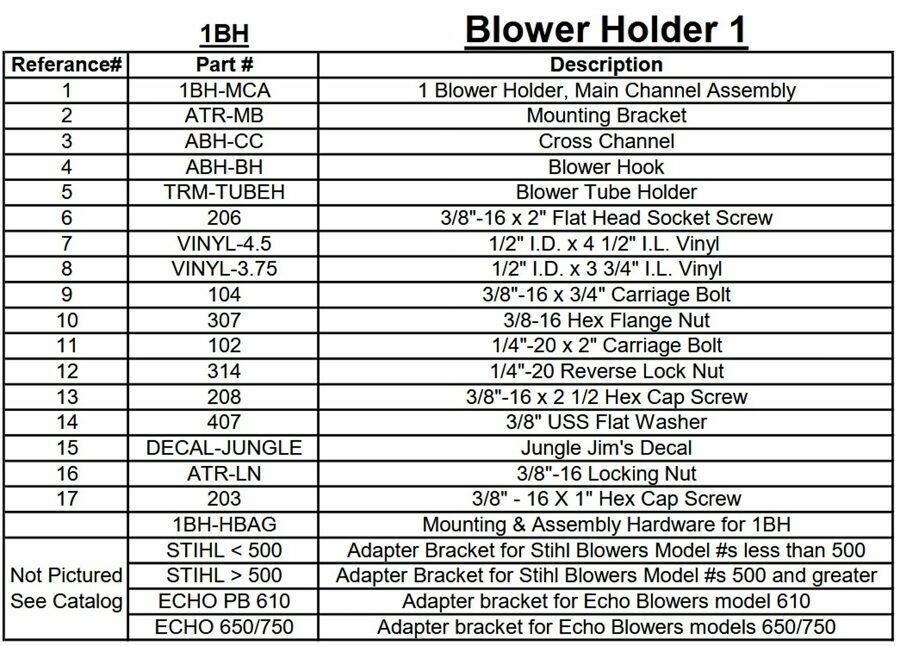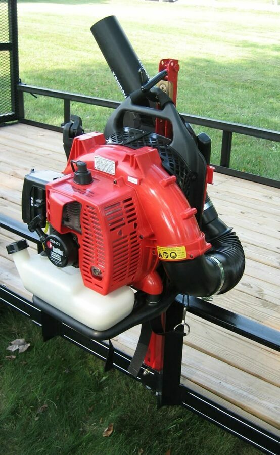 Description: The Blower Holder 1 holds one backpack blower and comes with an individual locking mechanism for simple locking capability. The design not only secures the blower, but also supports the blower tube.