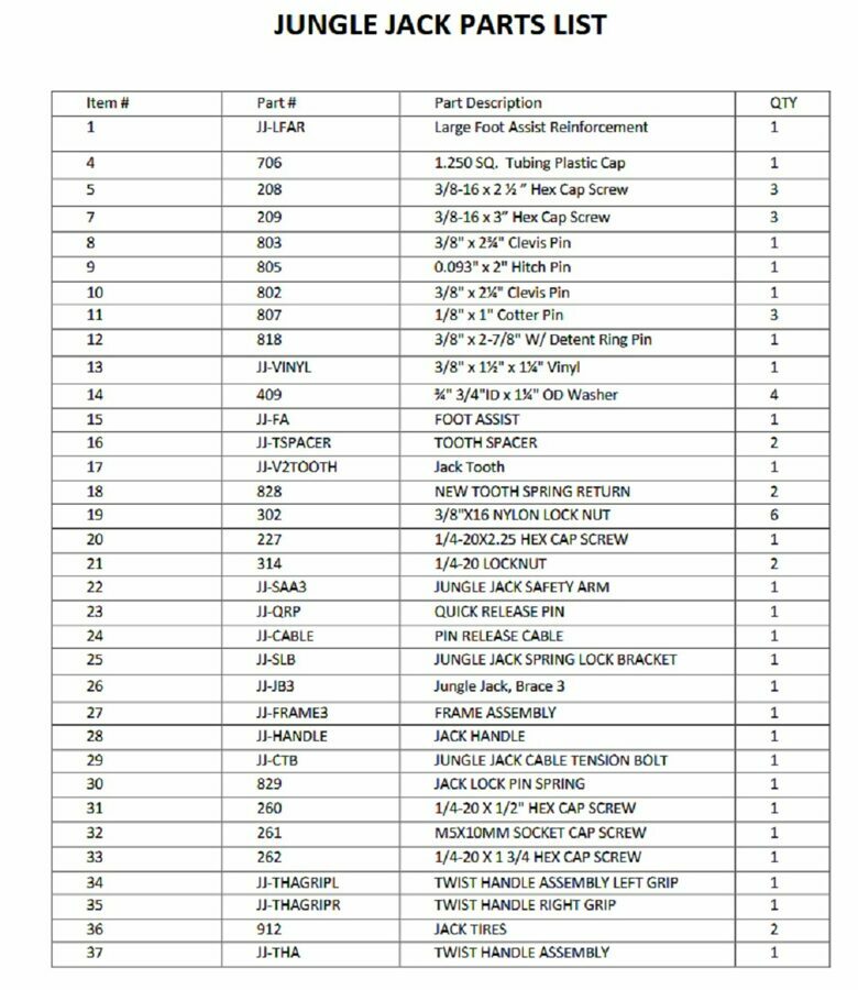 Details: The new and improved single lifting hook on the Jungle Jack makes it easier to lift your equipment approximately 19” off the ground from any angle.