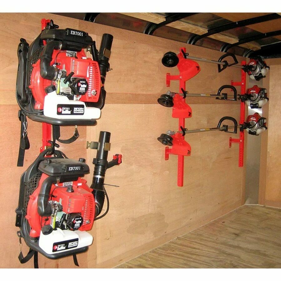 Details: Mount your Jungle Jim's Trimmer or Blower Rack in an enclosed trailer (Trimmer and Blower Racks Sold Separately)