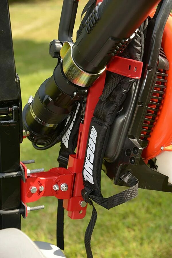 Description: Now you don't have to go back to the trailer to get your blower! Keep your blower within hands reach all the time. Mount a single backpack blower to a Zero Turn Mower ROPS bar