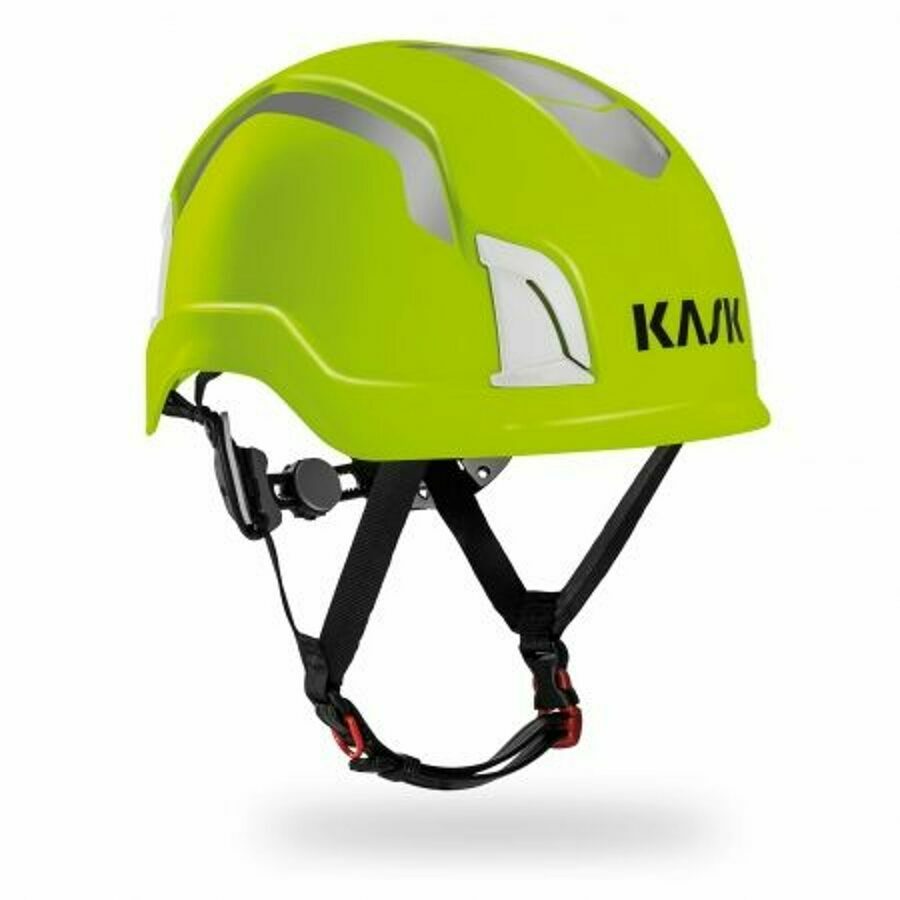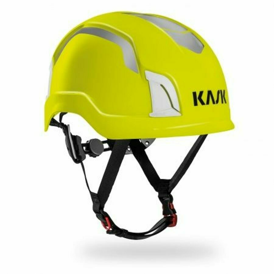 Description: The KASK ZENITH Hi-Visibility safety helmet brings a Class E rating (protection from electrical hazards) to a helmet that displays a mastery of design engineering from the Italian company. KASK is an expert in the combination of form and function, and the Zenith helmet is no exception.