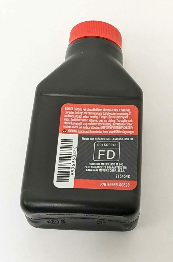 Description: For use in all engines where API and JASO FD oil is recommended, Kawasaki KTECH BLEND 2-Cycle Engine Oil is a synthetic blend that meets or exceeds the rigorous requirements of API TC, JASO FD, and ISO EGD classifications for 2-cycle air-cooled small engine applications. Includes low-smoke, blue dye for easy identification.