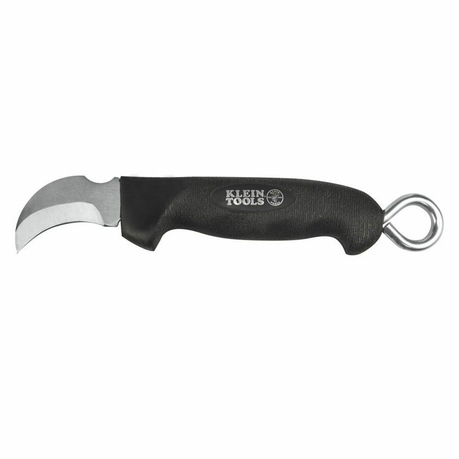 Description: The Klein Kurve Skinning Knife from Klein Tools features a 2-Inch (51 mm) blade that gives increased control when scoring and slitting the cable jacket. A notch on the back of the blade works well for scraping and removing insulation. The oversized ring provides added strength and makes it easy to store.