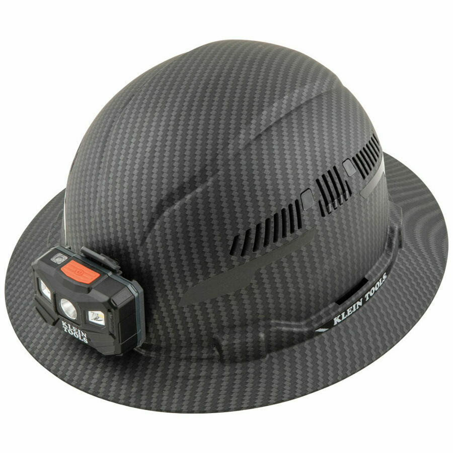 Description: Klein Tools premium KARBN full brim hard hats were engineered for optimal safety, cool comfort, and fit with a cutting edge design. Unique features allow the user to comfortably work in a wide variety of applications and demanding environments. Patent-pending accessory mounts on front and back ensure Klein headlamps attach securely no straps needed.