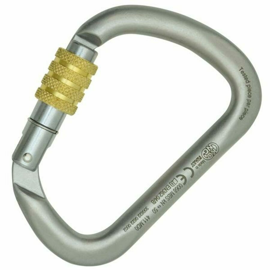 Description: Carbon steel carabiner with screw sleeve. The X-Large is designed to offer a wide gate opening and a high tensile strength. The particular D shape prevents the rotation of the carabiner and allows to distribute the load along the major axis. Equipped with Keylock system that prevents any snagging on the rope and in the bolts. Fitted with screw sleeve, easy to open even wearing gloves. Special burnished finishing that allows a greater visibility of the laser marking. High quality product completely developed and produced in Italy. Tested piece by piece.