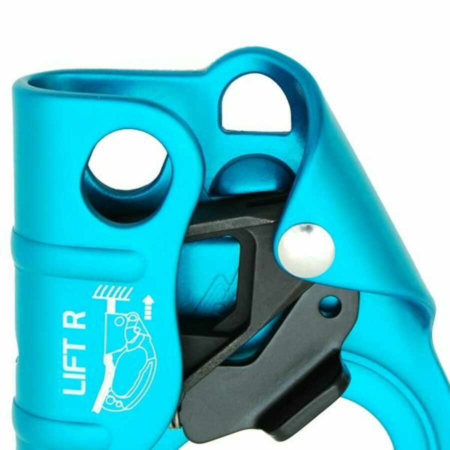 Description: Rope clamp for rope access, available in left and right versions. All the components are part of the latest generation of Kong blockers. Excellent ability to block out particularly on muddy and icy ropes thanks to the holes on the cam and on the side plate. The new material and a special chemical and thermal process give to the cam, in addition to black color, a much higher surface hardness. The result is a great wear resistance and a reduction of the fragility that usually penalizes steels by quenching to low temperatures.