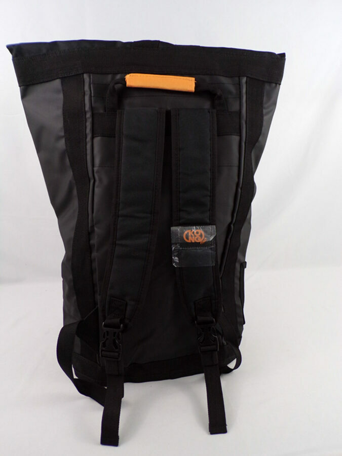 Description: Backpack for carrying ropes and equipment with comfortable padded shoulder straps and hook for suspension.