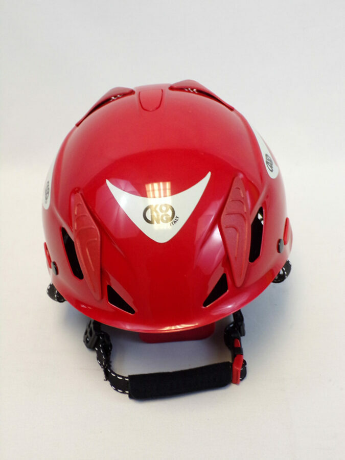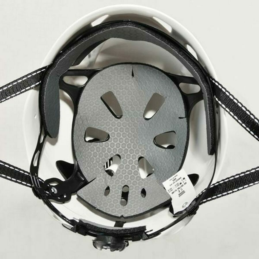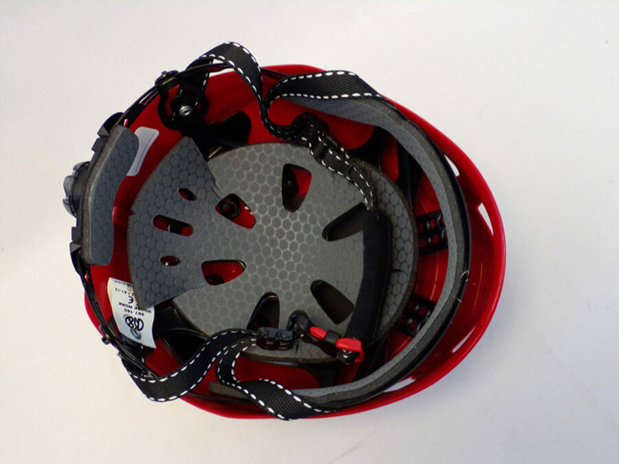 Details: Lightweight helmet, comfortable and well ventilated with wheel adjustment system. Chinstrap designed to open in the event of suspension and prevent choking: it opens between 15 and 25 daN (conform to CE EN 397 standard). Size adjustment wheel easily handable even with gloves on. Shell with ventilation holes and clips for mounting headlamps.