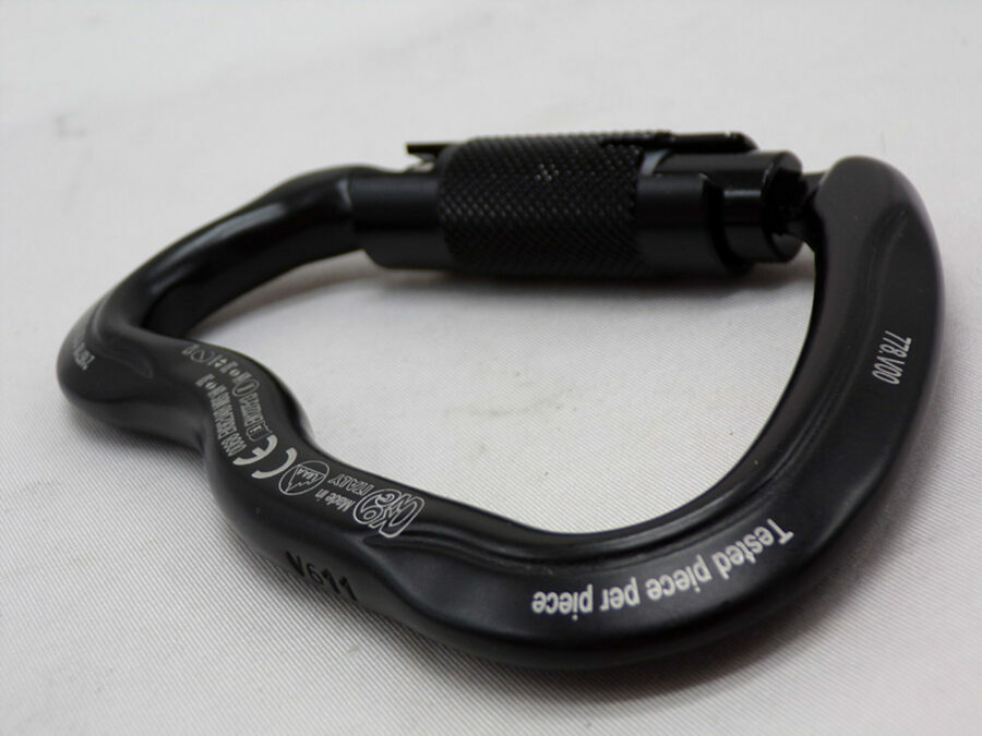 Description: Aluminum carabiner with 3 movements Auto Block sleeve and Keylock system. Its special shape allows a large aperture (less than 26 mm!) and excellent grip. The Auto Block sleeve makes it suitable for professional use. Normally used on lanyards for progression and positioning.