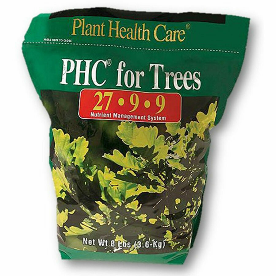Description: PHC 27-9-9 Tree Nutrient Management with Surfactant - 8lb Bag. Think of this product as a Fertility System that provides both short-term and long-term replenishment of nutrients. Uses water soluble formula with N-P-K fertilizers to boost soil fertility. It adds beneficial rhizosphere bacteria and an organic nutrient complex which sustains long term fertility. Perfect for soil injection and soil drenching of trees. Contains 27% nitrogen, 9% phosphate and 9% potassium. Also contains less than 1% of the following: boron, copper, iron, manganese, molybdenum, and zinc.