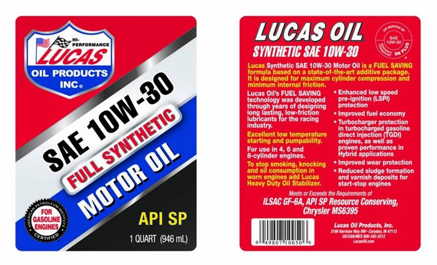 Description: Lucas Synthetic High Mileage Motor Oils are an excellent product that provides the consistent viscosity needed for precision ET racing. They are blended with an exclusive additive package that includes lubricity agents and anti-seize agents that control drag like a zero weight oil and protect metal like a heavy multi-viscosity oil. They are excellent for normal highway usage.